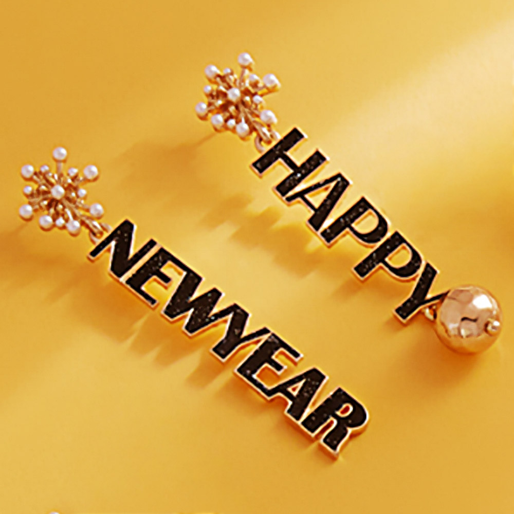 Details • Size : 0.5" X 2.5" • Titanium Post Back • Celebrate in style with these glitter letter drop earrings featuring festive “HAPPY” and “NEW YEAR” designs. Sparkling accents and playful dangles make them the perfect statement accessory for parties and celebrations, adding fun and glamour to every festive outfit. • Hypoallergenic • Lead and Nickel Compliant