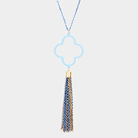 Rhinestone Paved Clover Pendant Pearl Necklace