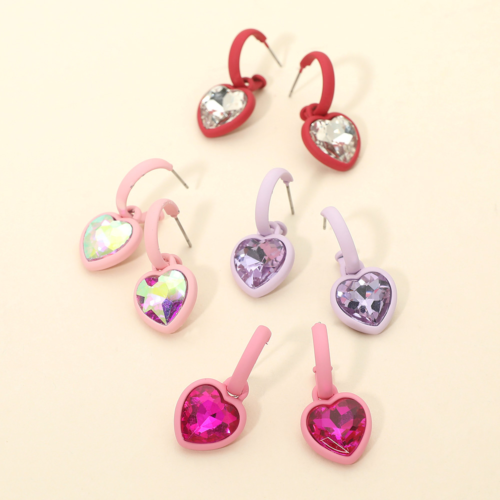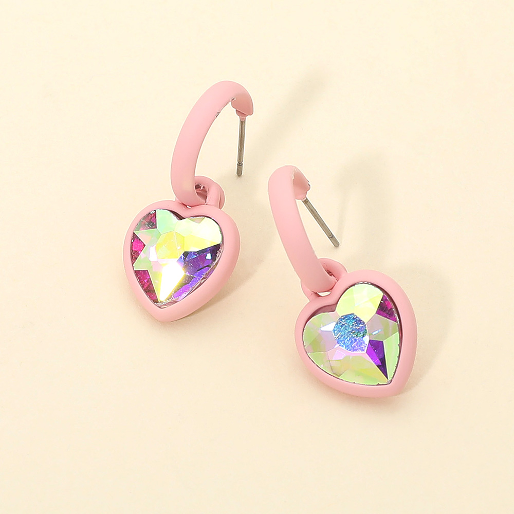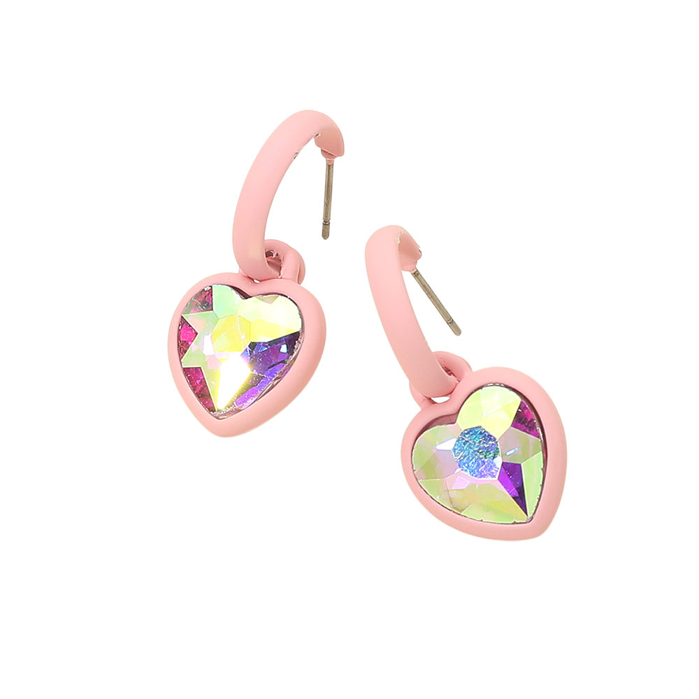 Details • Size : 0.6" X 1.1" • Post Back • These heart charm hoop earrings feature a dangling heart design with a faceted sparkle detail that adds playful elegance to any look. Ideal for everyday wear, gifts, and seasonal collections, they bring a trendy yet sweet touch that appeals to customers seeking fun, eye-catching accessories. • Lead and Nickel Compliant