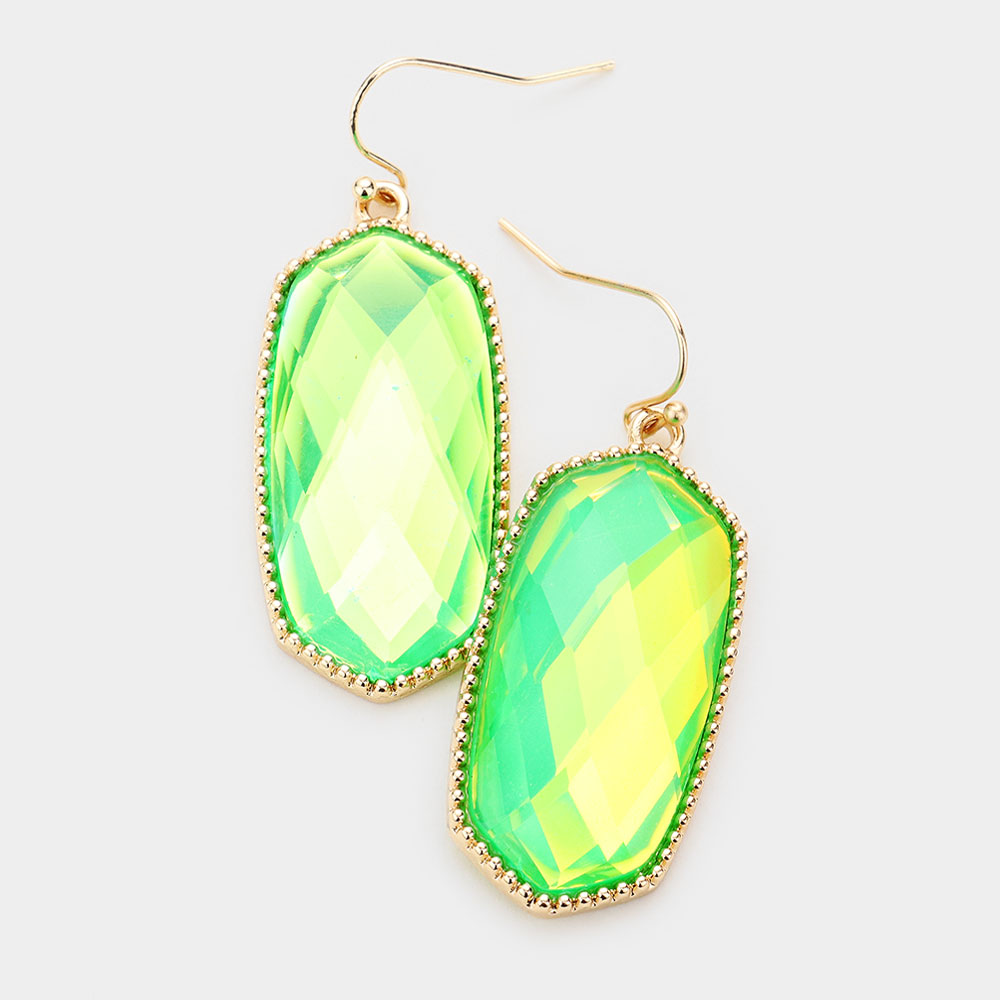 Leopard Glitter Hexagon Stone Dangle Earrings