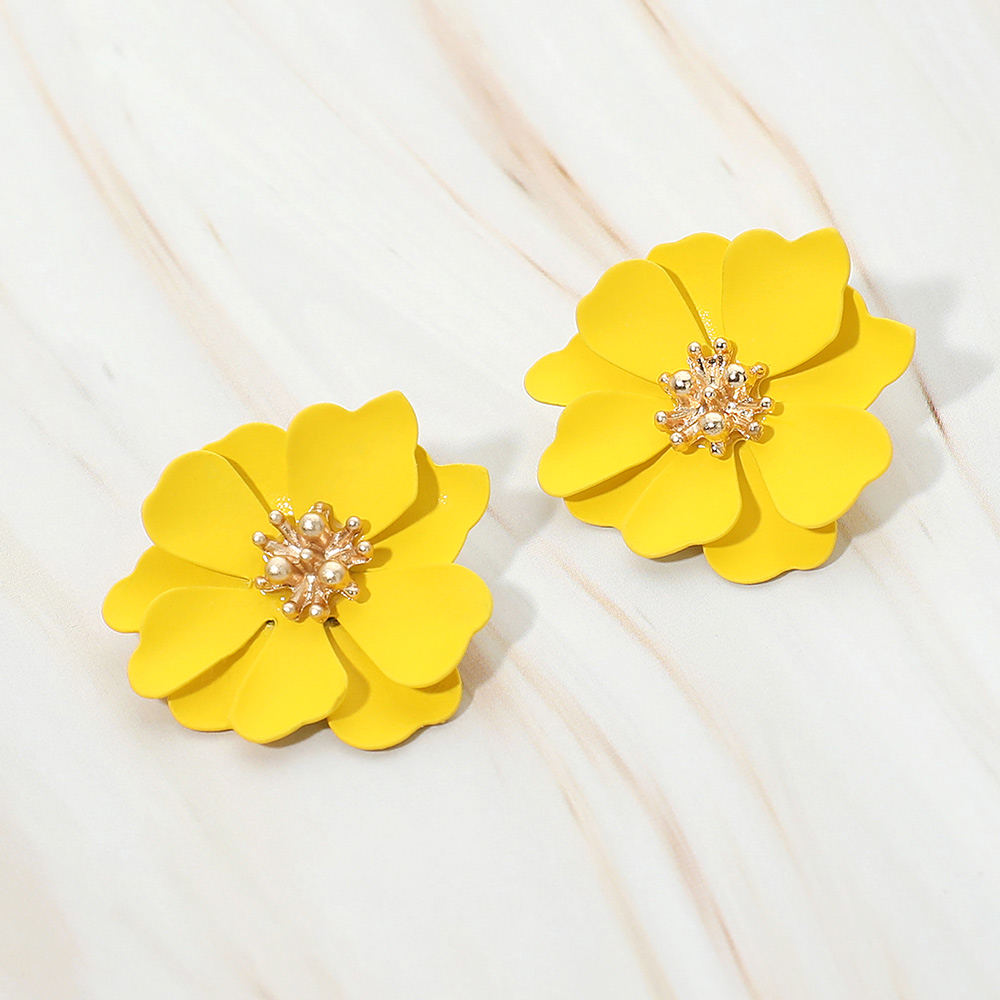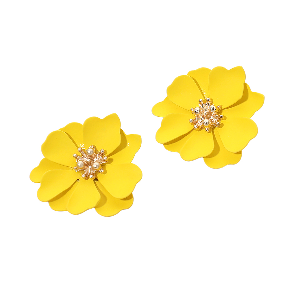 Details • Size : 1.2" X 1.1" • Post Back • Charming layered petal flower stud earrings designed with sculpted petal details and a dimensional floral silhouette. A versatile accessory for everyday styling, seasonal collections, boutiques, and gift-ready assortments, offering feminine appeal with a lightweight, easy-to-wear design. • Lead and Nickel Compliant