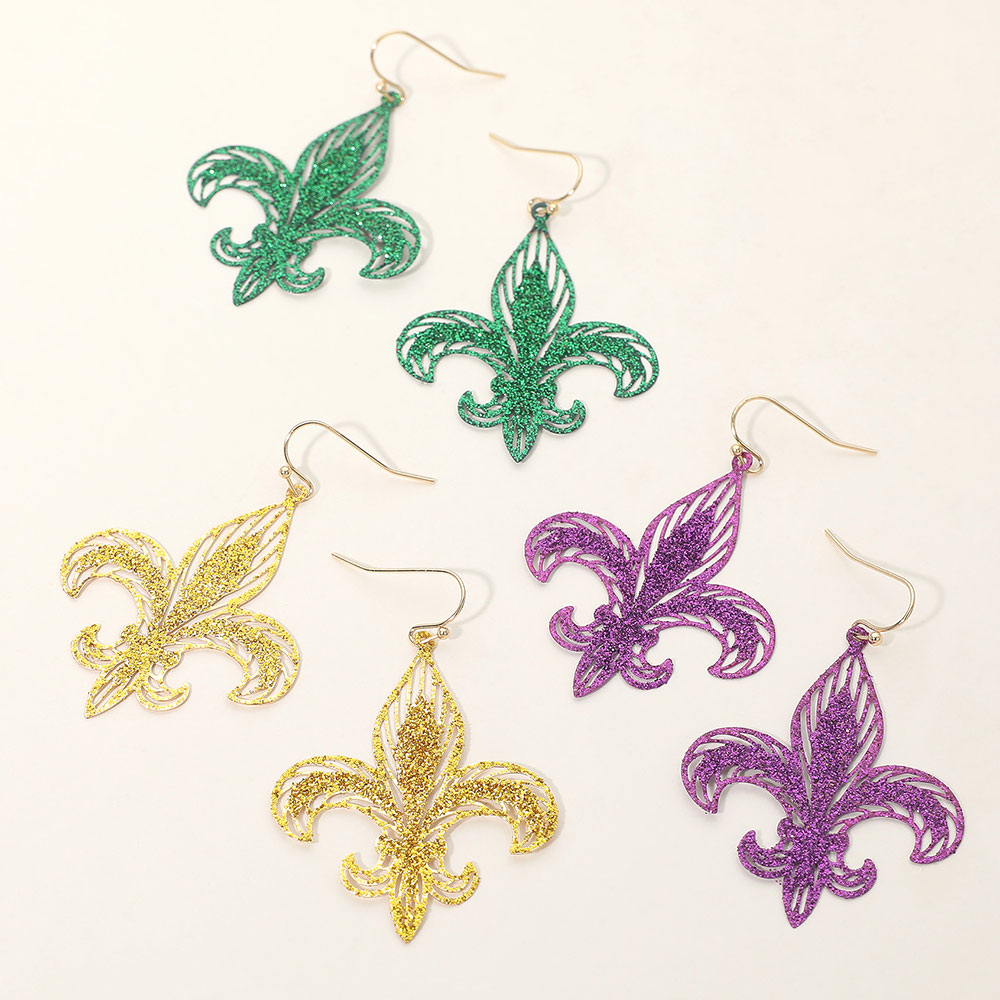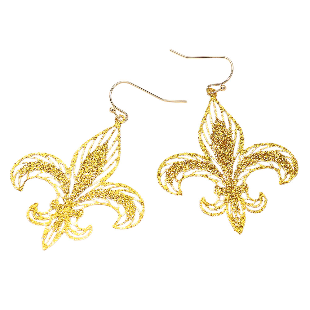 Lightweight Glitter Fleur de Lis Dangle Earrings