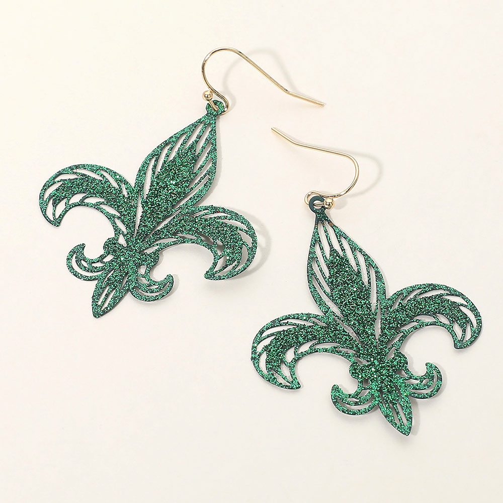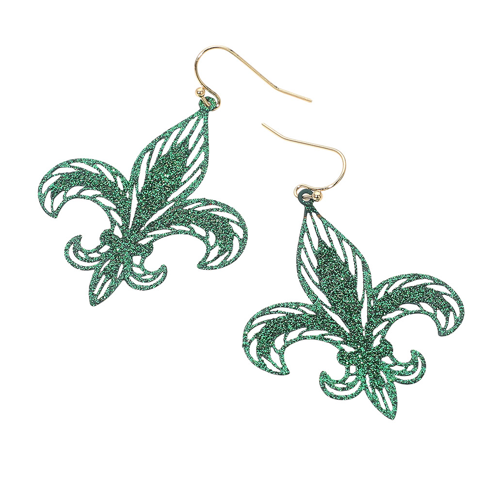 Lightweight Glitter Fleur de Lis Dangle Earrings