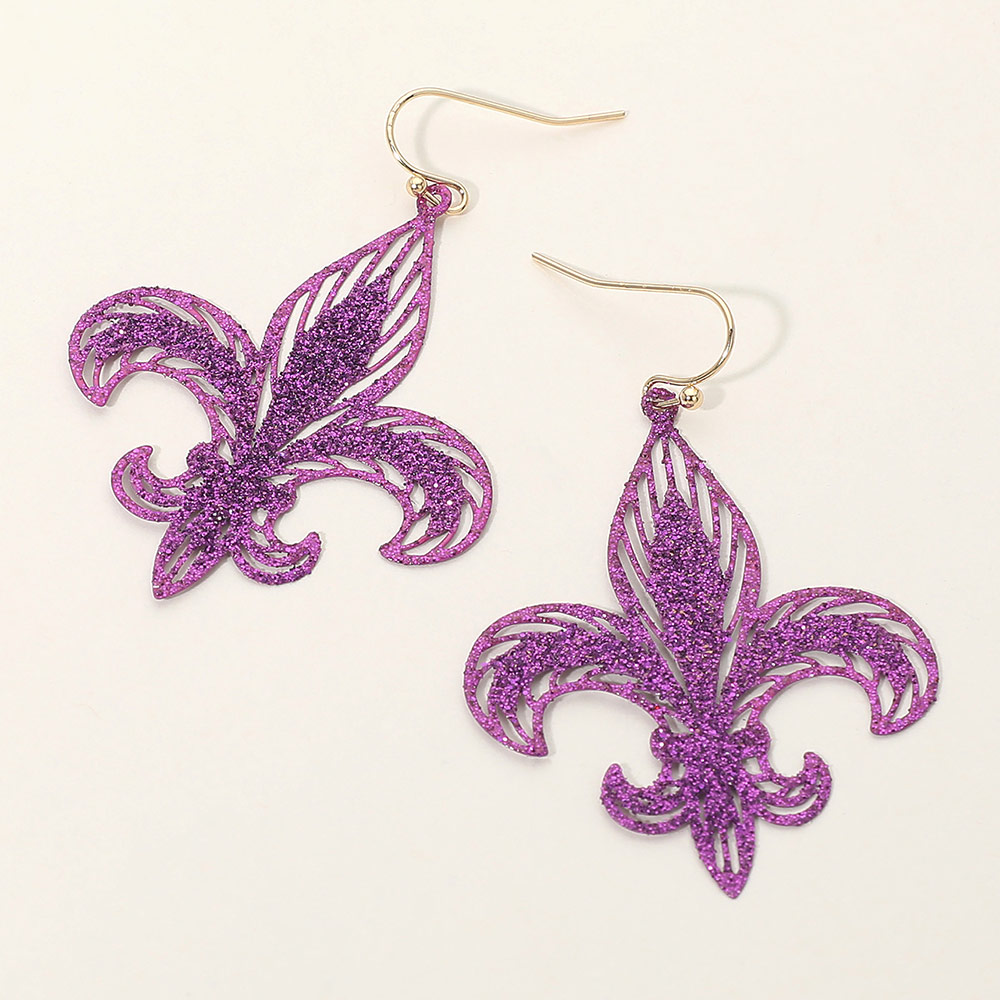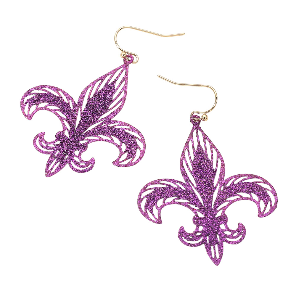 Lightweight Glitter Fleur de Lis Dangle Earrings