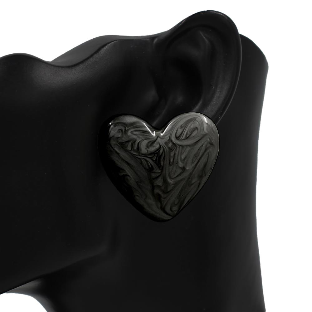 Details • Size : 1.5" X 1.3" • Post Back • Charming heart-shaped stud earrings designed with a smooth, polished finish and bold silhouette. Perfect for boutiques and gift collections, these studs offer playful elegance for daily wear, casual outfits, date nights, and trendy seasonal styling. • Lead and Nickel Compliant