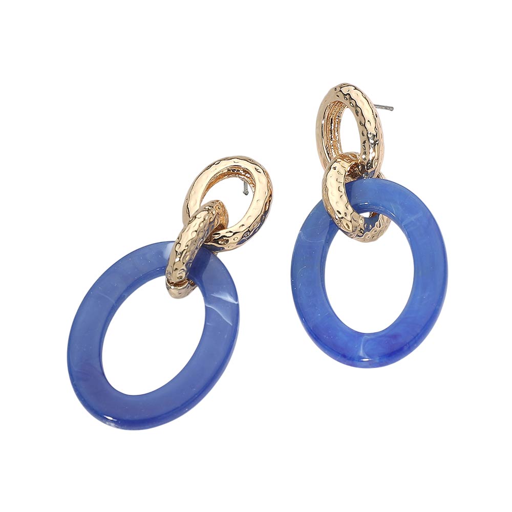 Details • Size : 1.2" X 2.25" • Post Back • Modern linked drop earrings featuring a smooth oval design paired with a textured ring accent for added depth and movement. The layered silhouette creates an elegant balance of structure and flow, making these earrings easy to style from day to night. A versatile statement accessory that elevates everyday outfits, workwear, and special occasion looks with effortless sophistication. • Lead and Nickel Compliant