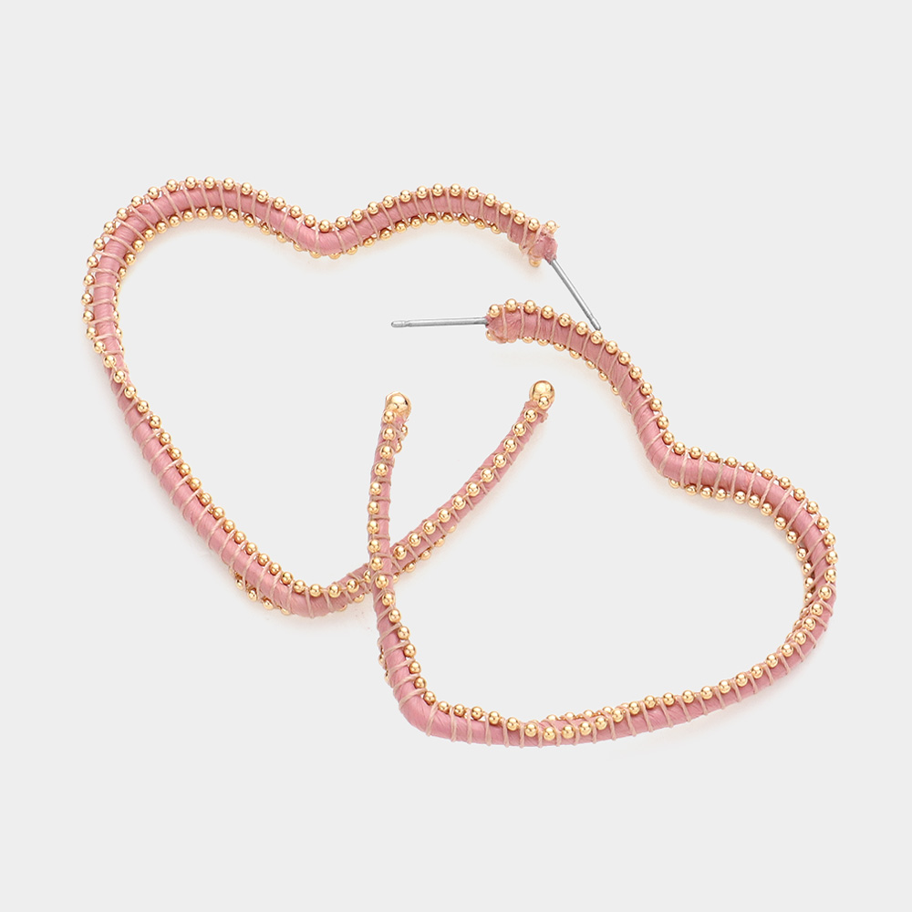 Metal Ball Trimmed Heart Hoop Earrings