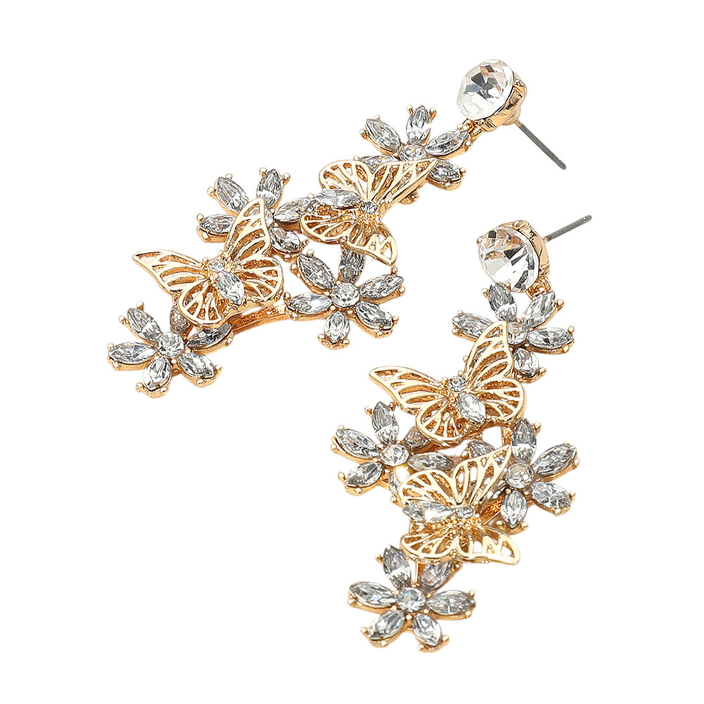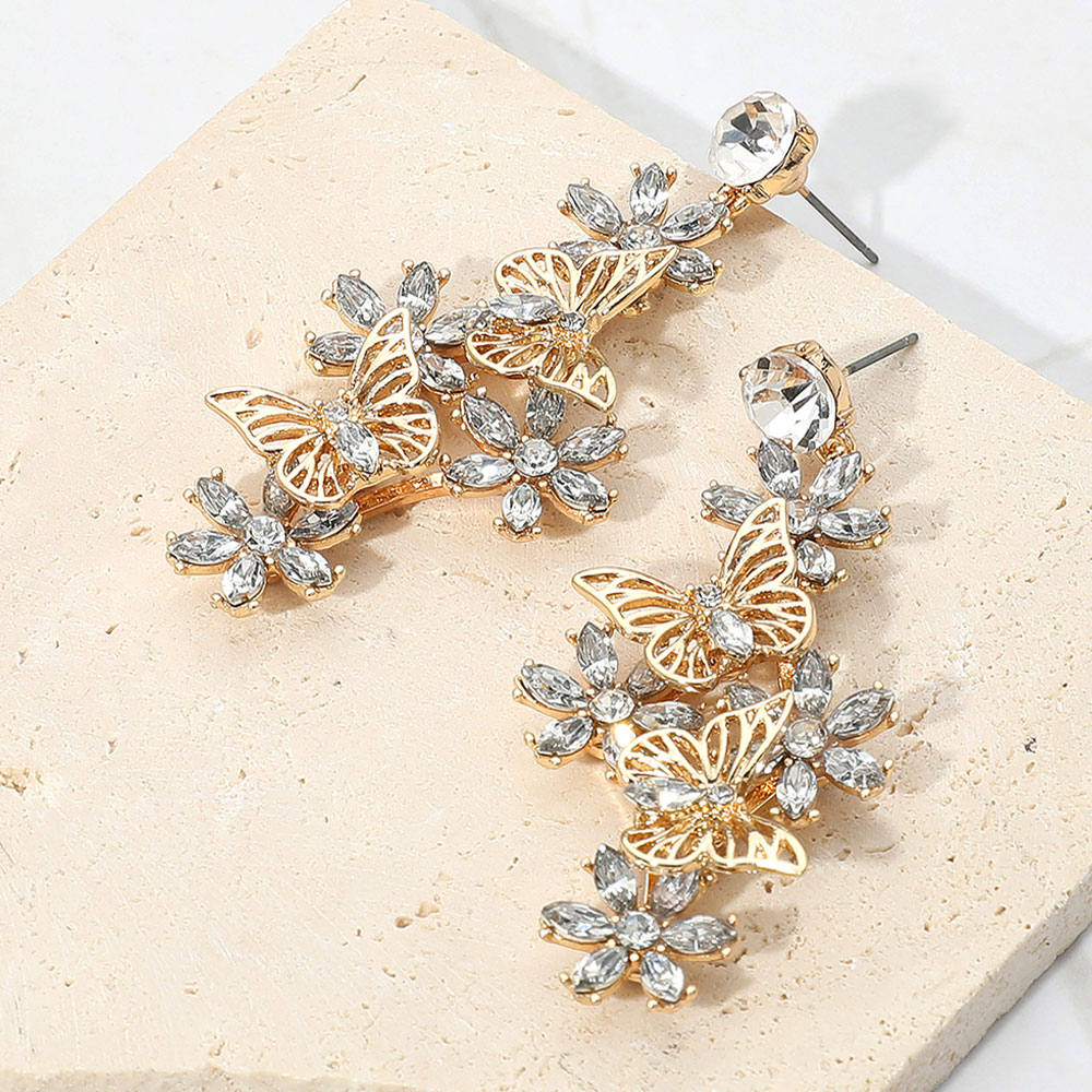 Metal Butterfly Stone Flower Cluster Dangle Earrings