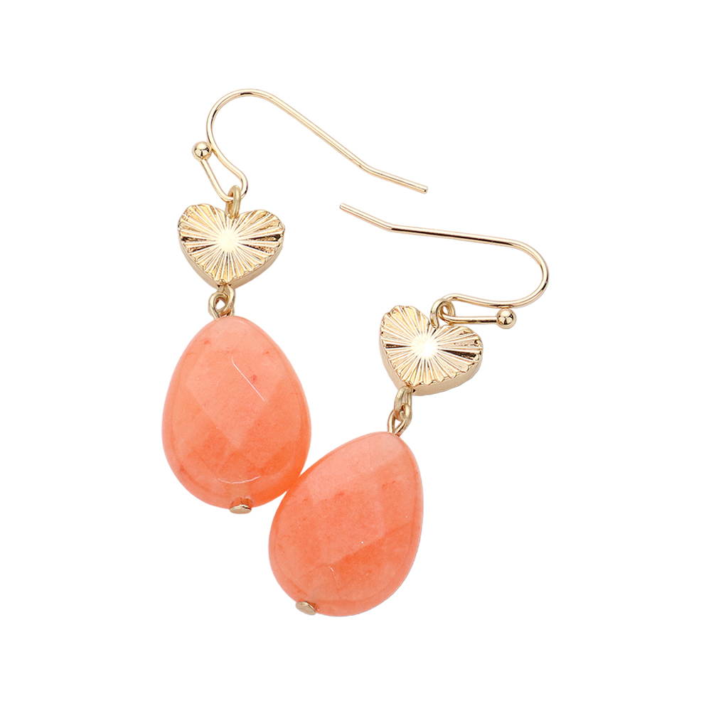 Metal Heart Teardrop Natural Stone Link Dangle Earrings