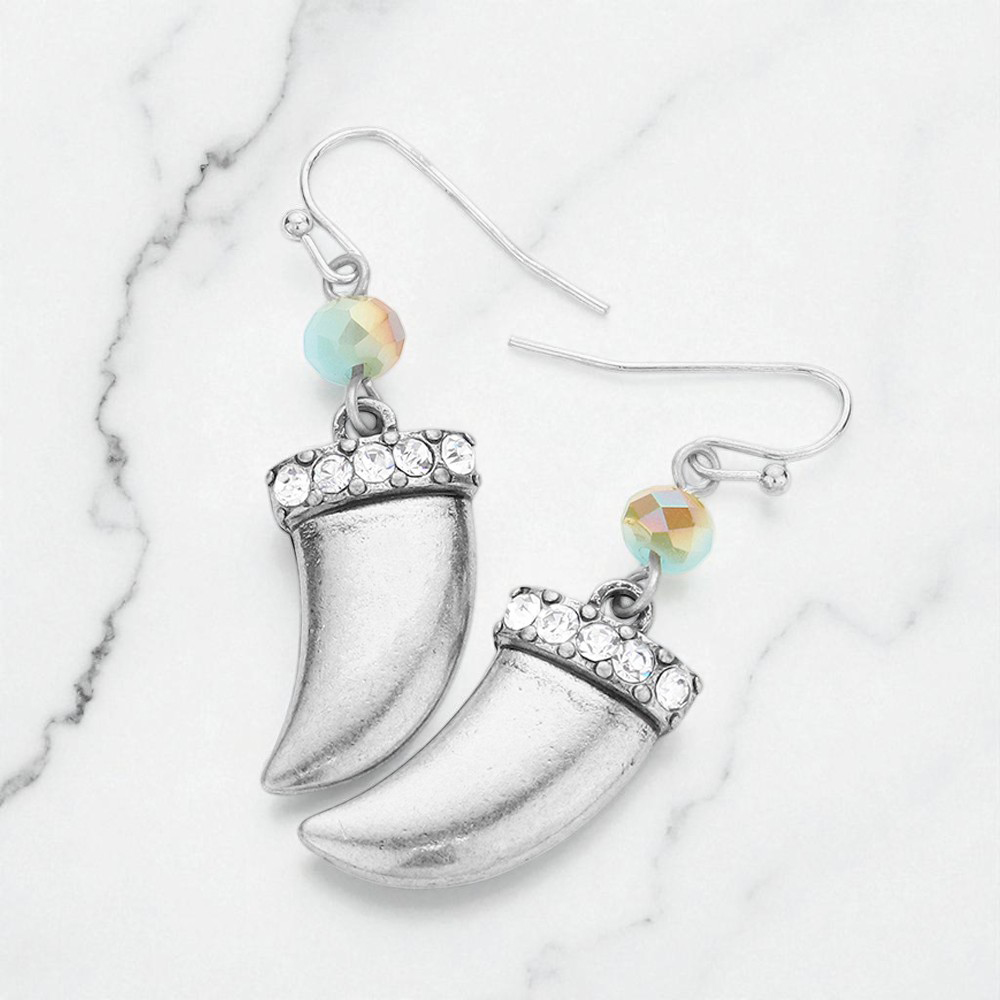Stainless Steel Swirl Enamel Tilted Crescent Embossed Pendant Necklace