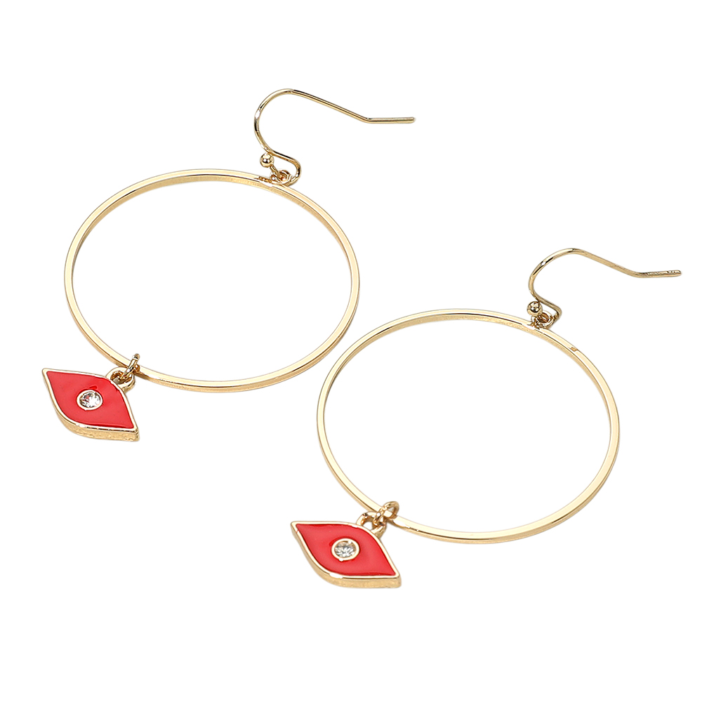 Details • Size : 1.4" X 2.25" • Fish Hook Back • These sleek hoop earrings feature a delicate eye charm with a subtle sparkle, blending elegance with modern symbolism. Lightweight and versatile, they add a chic touch to casual or dressy looks, making them a stylish accessory for everyday wear or special occasions. • Lead and Nickel Compliant