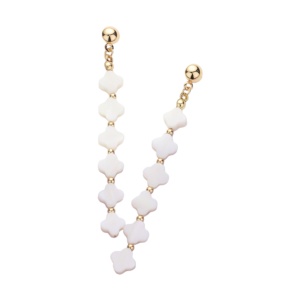 Stainless Steel Mother of Pearl Quatrefoil Stud Earrings
