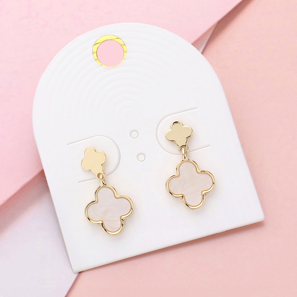 Felt Back Pearl Cluster Quatrefoil American USA Flag Beer Link Dangle Earrings