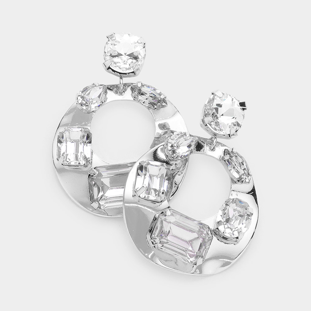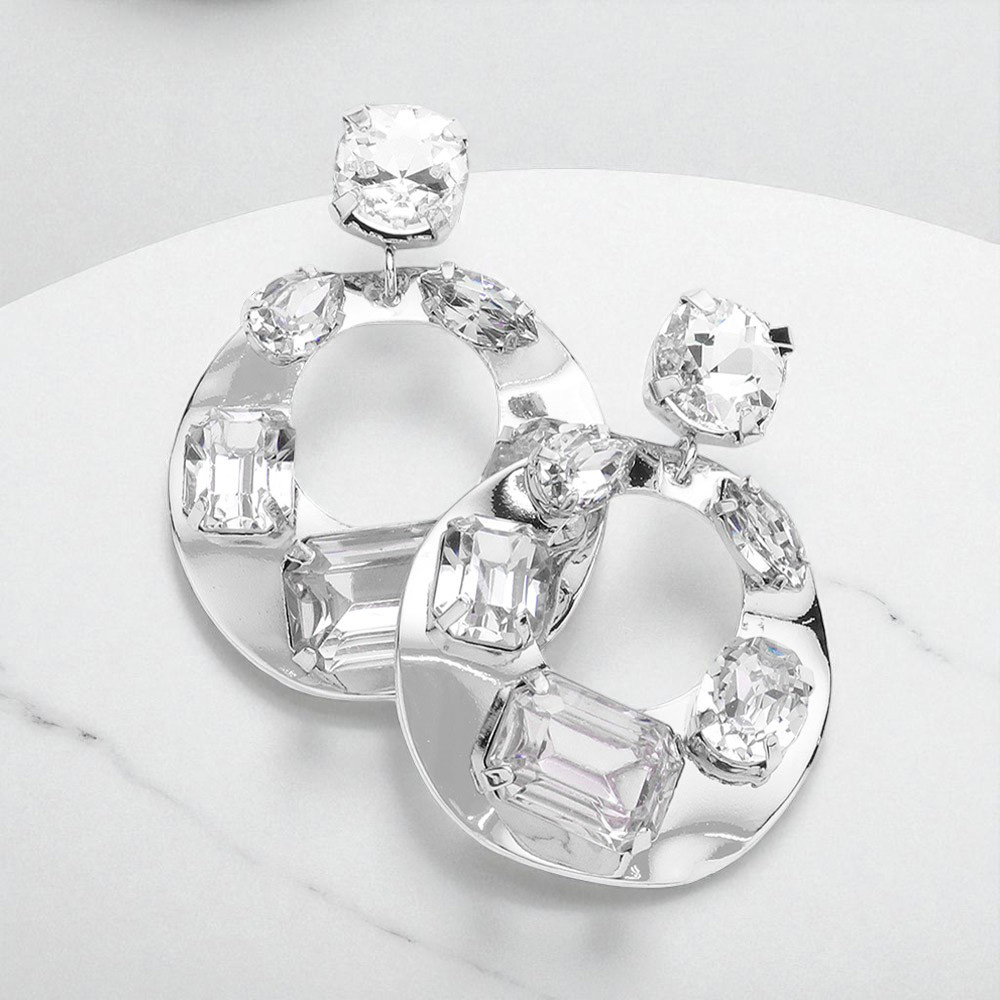 Multi Stone Embellished Crushed Metal Dangle Earrings