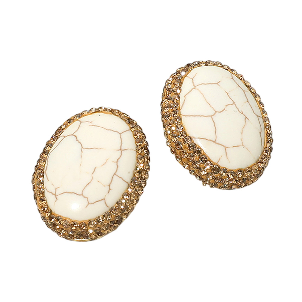 Details • Size : 0.8" X 12" • Post Back • Elegant oval stone stud earrings framed with a sparkling textured border for a timeless and stylish look. Lightweight and versatile, these classic earrings add sophistication to any outfit, perfect for daily wear, parties, or gifting. A chic accessory that enhances both casual and formal styles. • Lead and Nickel Compliant