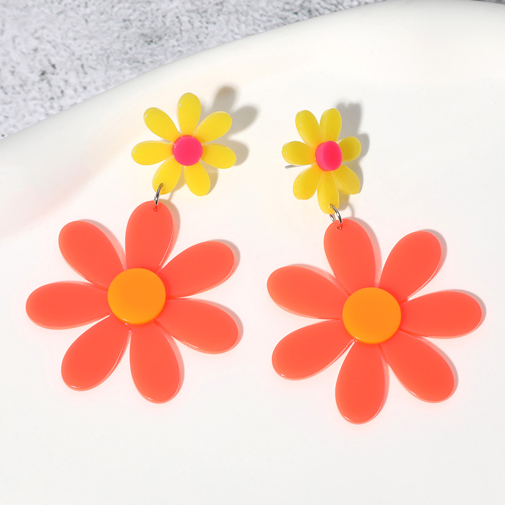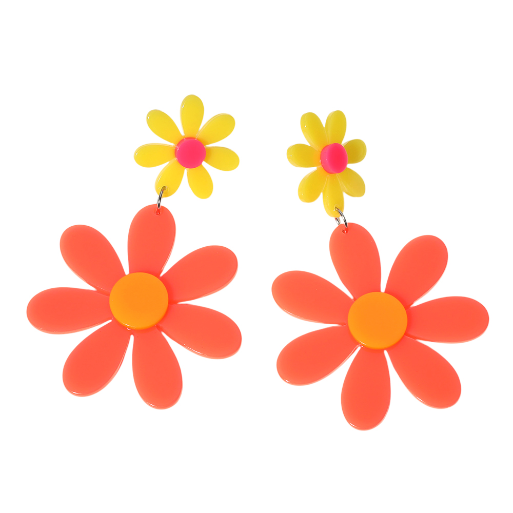 Neon Acrylic Double Flower Dangle Earrings