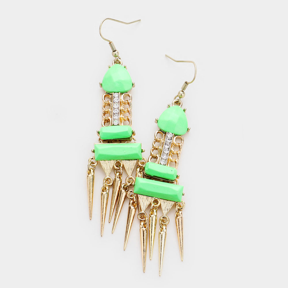 Teardrop Stone Pendant Accented Rhinestone Pave Necklace Clip on Earring Set