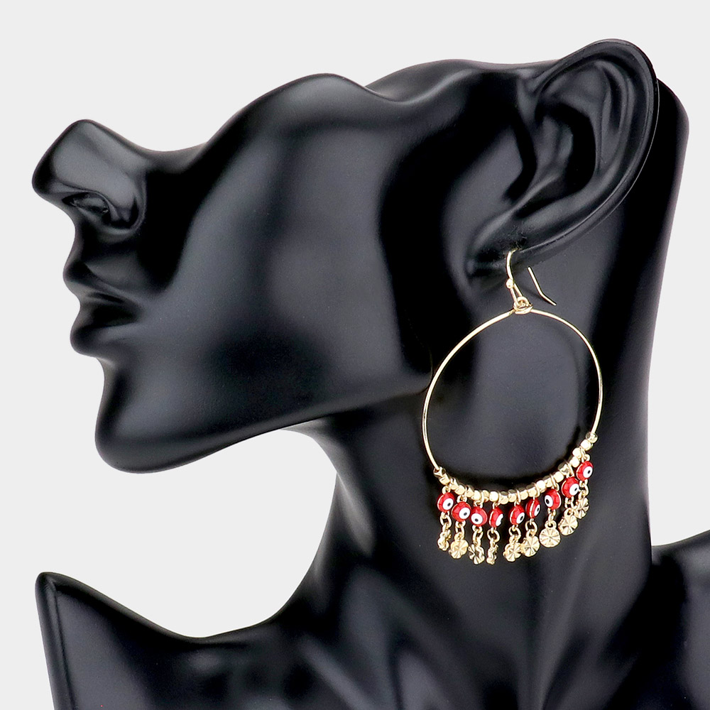 Open Metal Circle Evil Eye Link Dangle Earrings