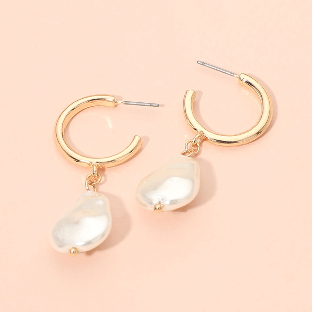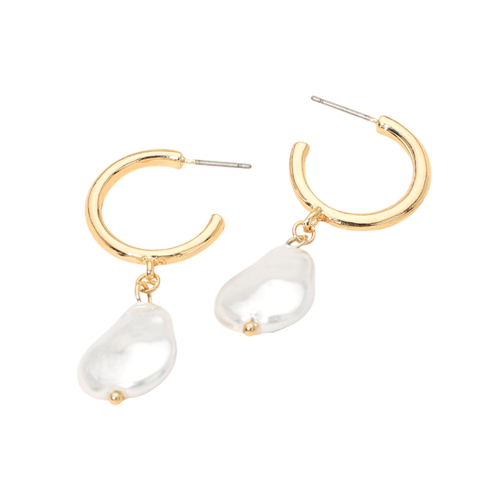 Organic Shape Pearl Drop Hoop Earrings Organic Shape Pearl Drop Hoop Earrings