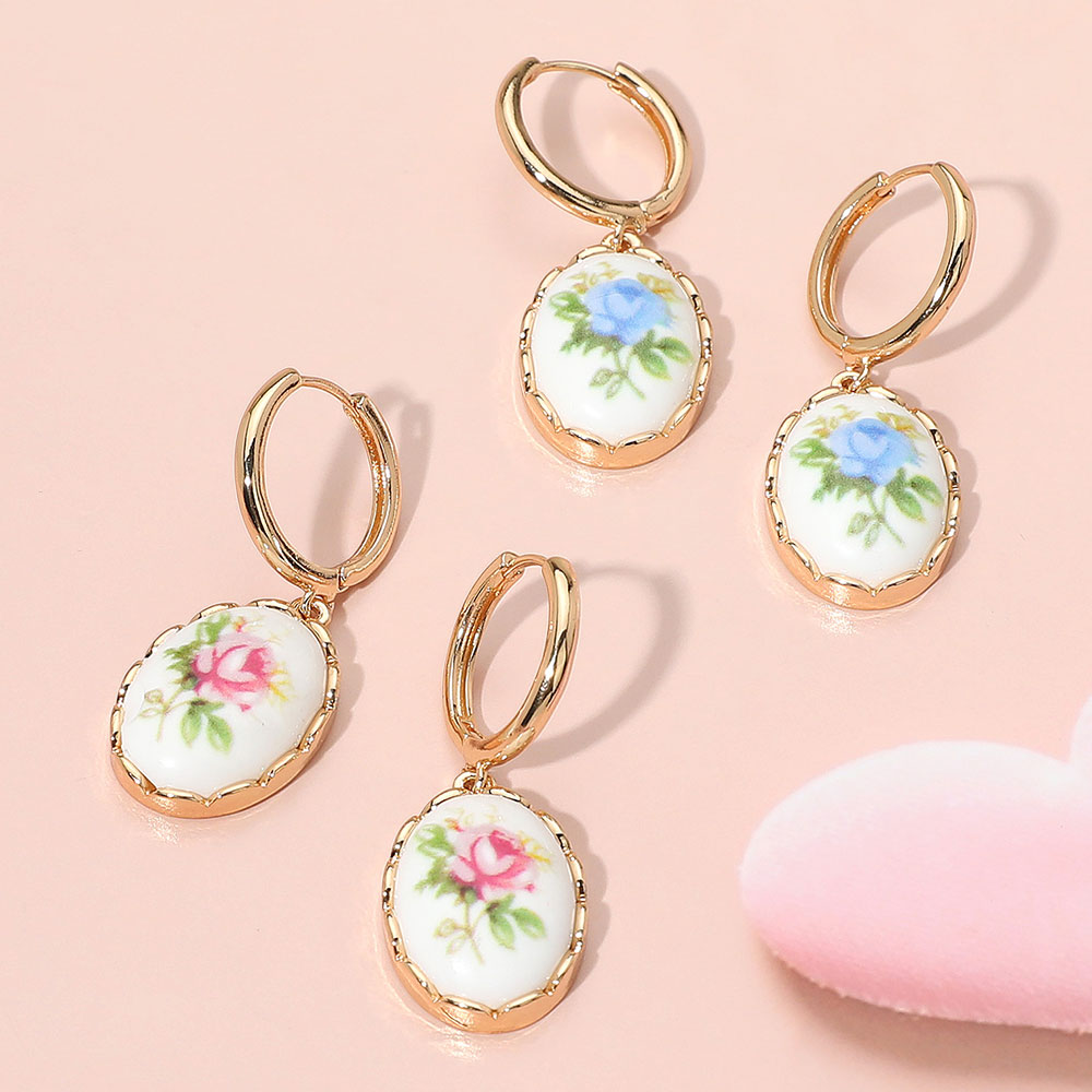 Enamel Bow Metal Heart Flower Charm Ceramic Ball Beaded Stretch Bracelet