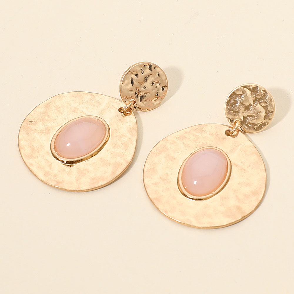 Details • Size : 1.25" X 1.75" • Post Back • These hammered disc drop earrings feature a smooth oval centerpiece for a chic, artistic look. Lightweight and stylish, they add a touch of modern elegance to casual or dressy outfits, making them a versatile accessory for everyday wear or special occasions. • Lead and Nickel Compliant