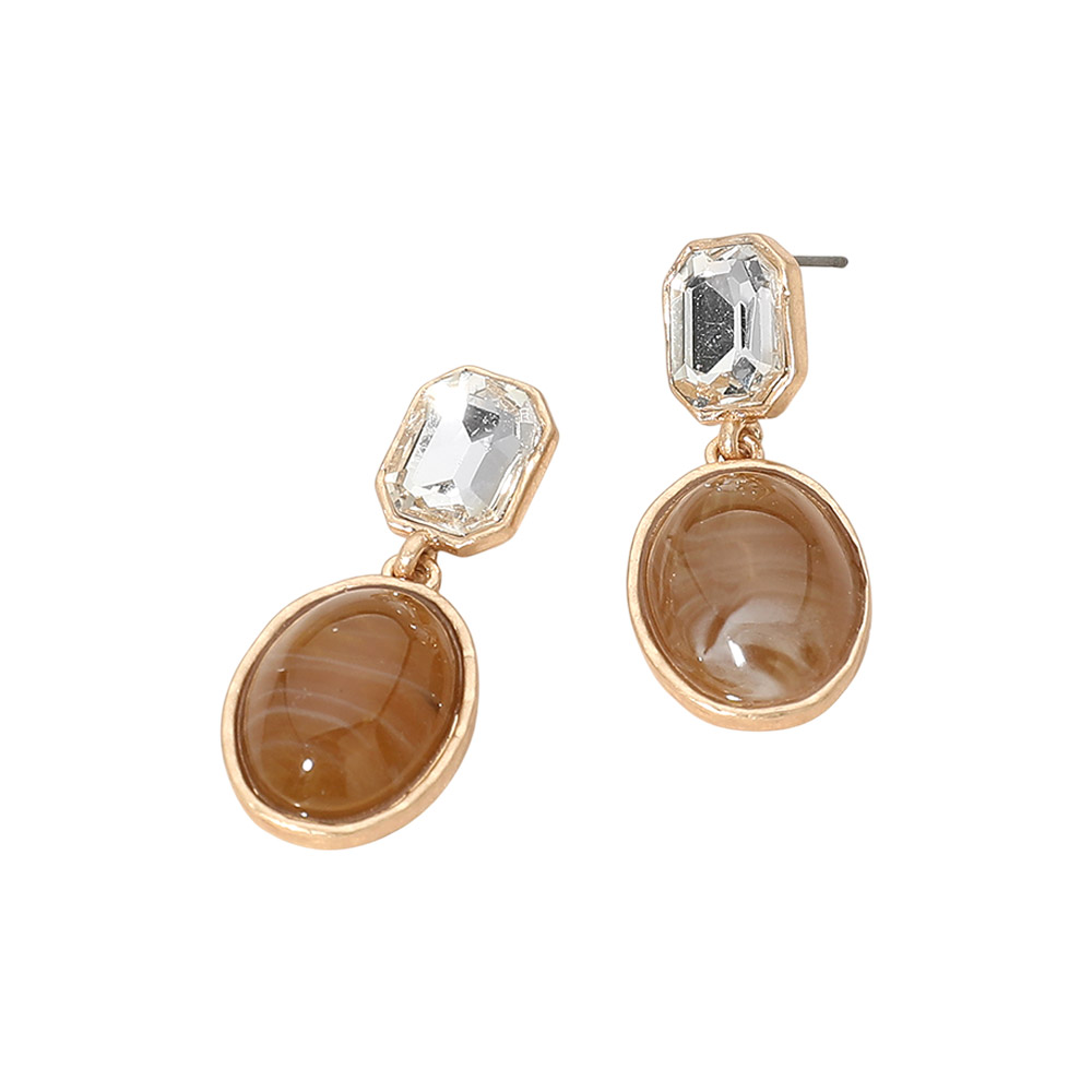 • Oval stone drop earrings designed with a sleek faceted top and smooth oval drop for a refined, modern look. This versatile style offers balanced movement and elegant shine, making it ideal for everyday wear, office styling, or special occasions. A timeless addition for curated jewelry collections and boutique assortments.