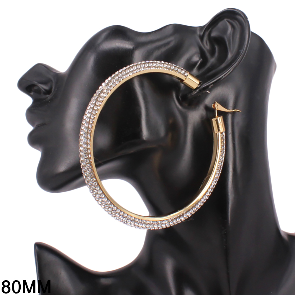 • Statement hoop earrings designed with a sleek curved silhouette and fully embellished surface for maximum shine. The bold 80mm size creates instant impact while remaining lightweight and comfortable for extended wear. Ideal for parties, festivals, night events, and trend-forward jewelry collections.