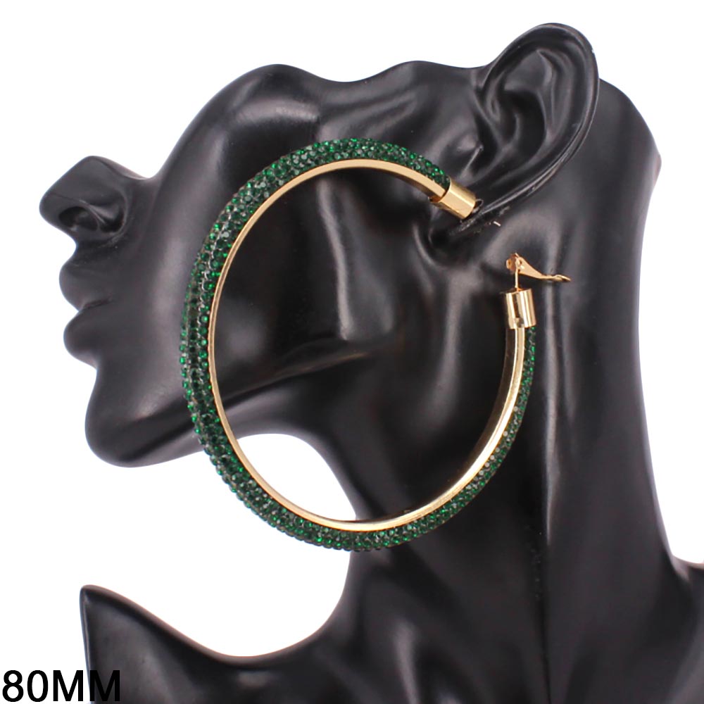 • Statement hoop earrings designed with a sleek curved silhouette and fully embellished surface for maximum shine. The bold 80mm size creates instant impact while remaining lightweight and comfortable for extended wear. Ideal for parties, festivals, night events, and trend-forward jewelry collections.