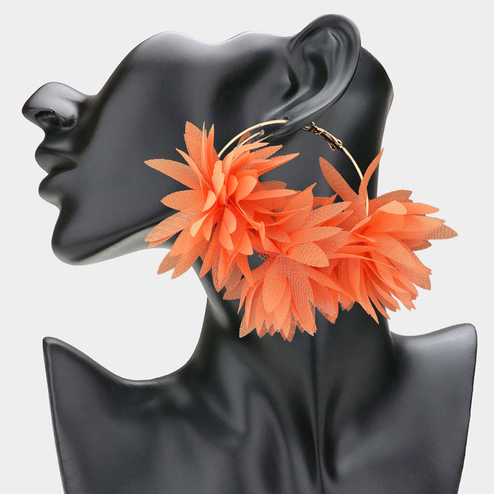 Oversized Fabric Floral Petal Statement Hoop Earrings Oversized Fabric Floral Petal Statement Hoop Earrings