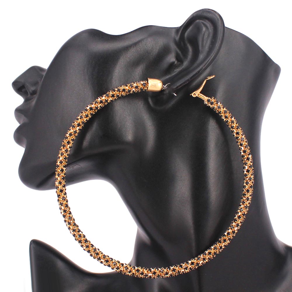 Details • Size : 4" X 4" • Omega Closure • Shine bright with these oversized rhinestone hoop earrings designed for maximum sparkle and glamour. Perfect for parties, night outs, or special events, they deliver bold style and lightweight comfort, making them the ultimate statement accessory for standout looks. • Lead and Nickel Compliant