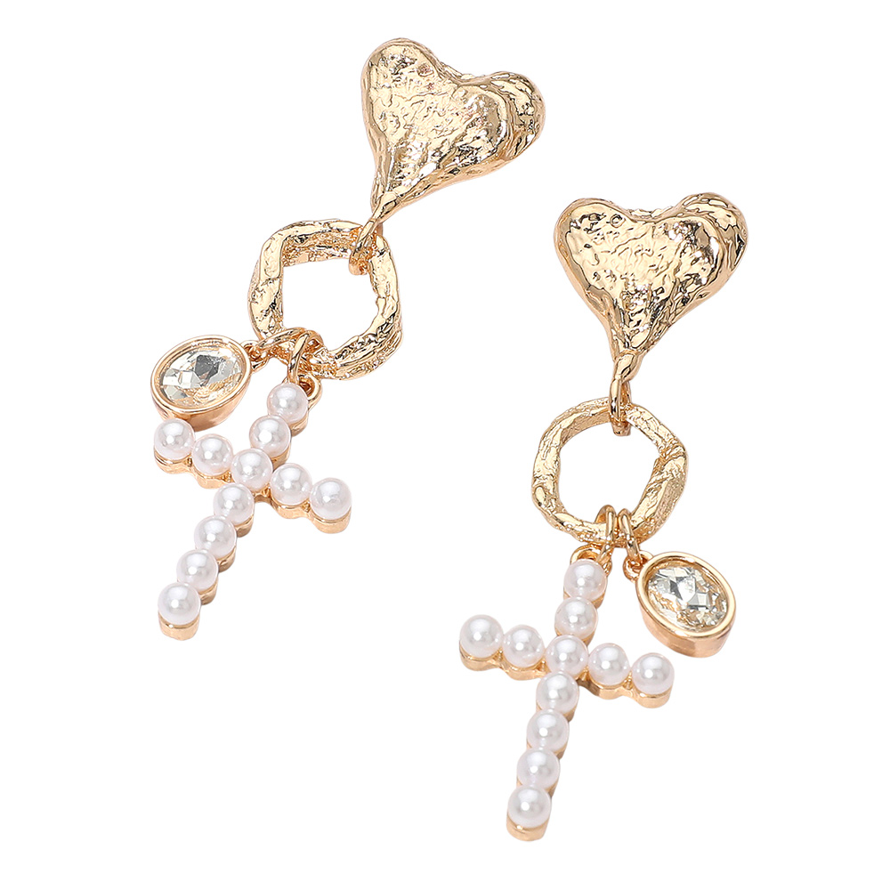 Details • Size : 0.75" X 2.8" • Post Back • Make a bold yet romantic statement with these heart cross drop earrings showcasing layered charm elements and graceful movement. Designed to add eye-catching detail without overwhelming your look, they’re perfect for elevating everyday outfits or accenting special occasion styles. • Lead and Nickel Compliant