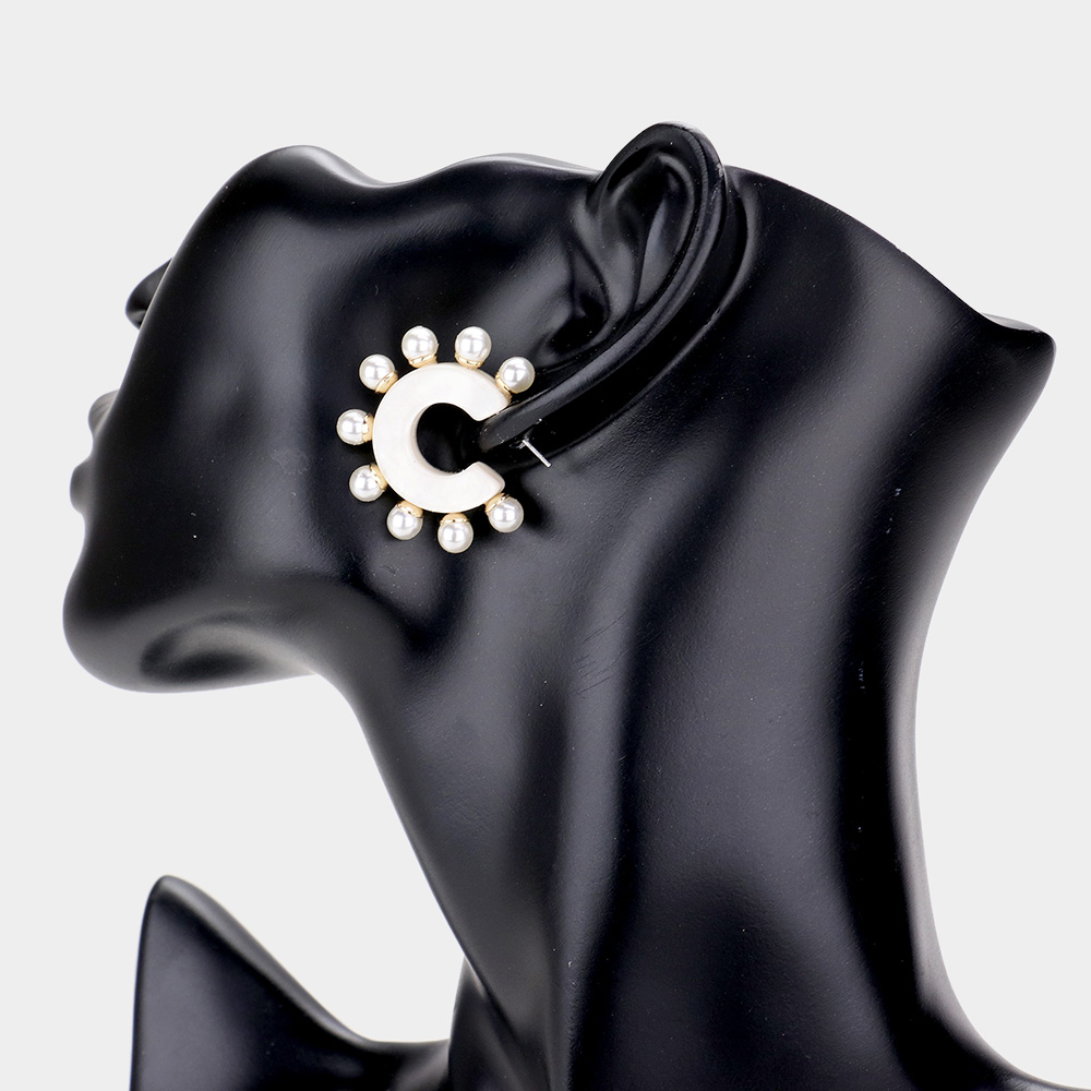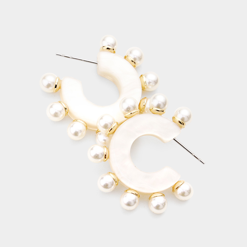 Pearl Detail Celluloid Acetate Half Hoop Earrings