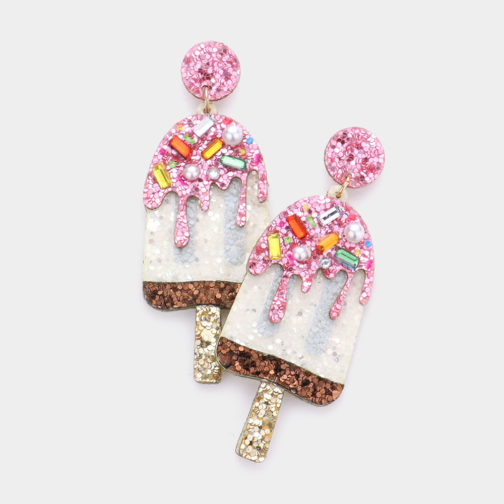 Pearl Stone Embellished Glittered Popsicle Dangle Earrings