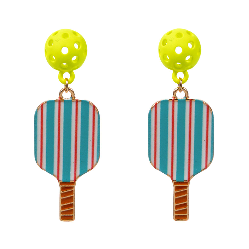 • These pickleball paddle drop earrings feature a playful ball accent and sporty paddle design that adds fun energy to any outfit. Lightweight and eye catching, they are ideal for game day looks, casual styling, gifting, or pickleball enthusiasts who want accessories that celebrate the sport with personality and charm.
