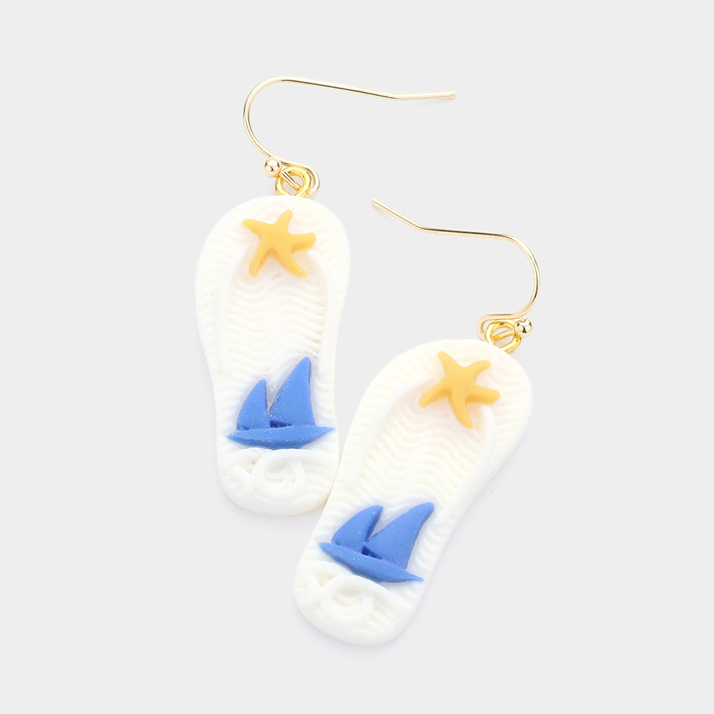 Polymer Clay Starfish Ship Detailed Flip Flop Dangle Earrings