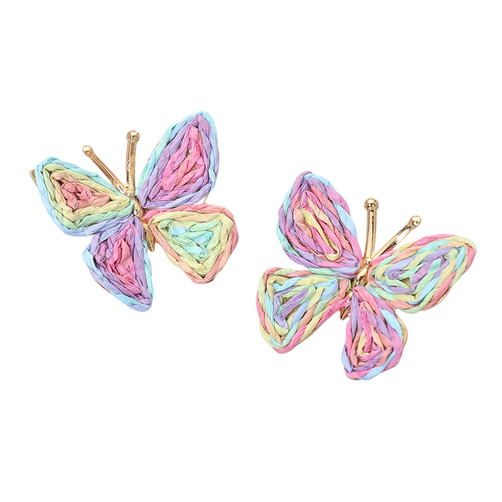 • These butterfly raffia woven texture stud earrings feature dimensional layered detailing with a lightweight feel and charming silhouette. Designed to add playful elegance and boutique appeal, they are perfect for everyday wear, gifting, seasonal collections, spring outfits, casual styling, and trend-driven accessory assortments.