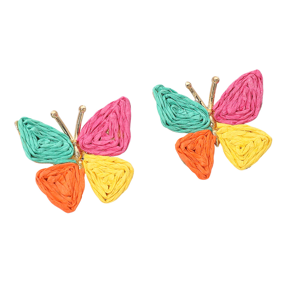 Details • Size : 1.5" X 1.3" • Post Back • These butterfly raffia woven texture stud earrings feature dimensional layered detailing with a lightweight feel and charming silhouette. Designed to add playful elegance and boutique appeal, they are perfect for everyday wear, gifting, seasonal collections, spring outfits, casual styling, and trend-driven accessory assortments. • Lead and Nickel Compliant