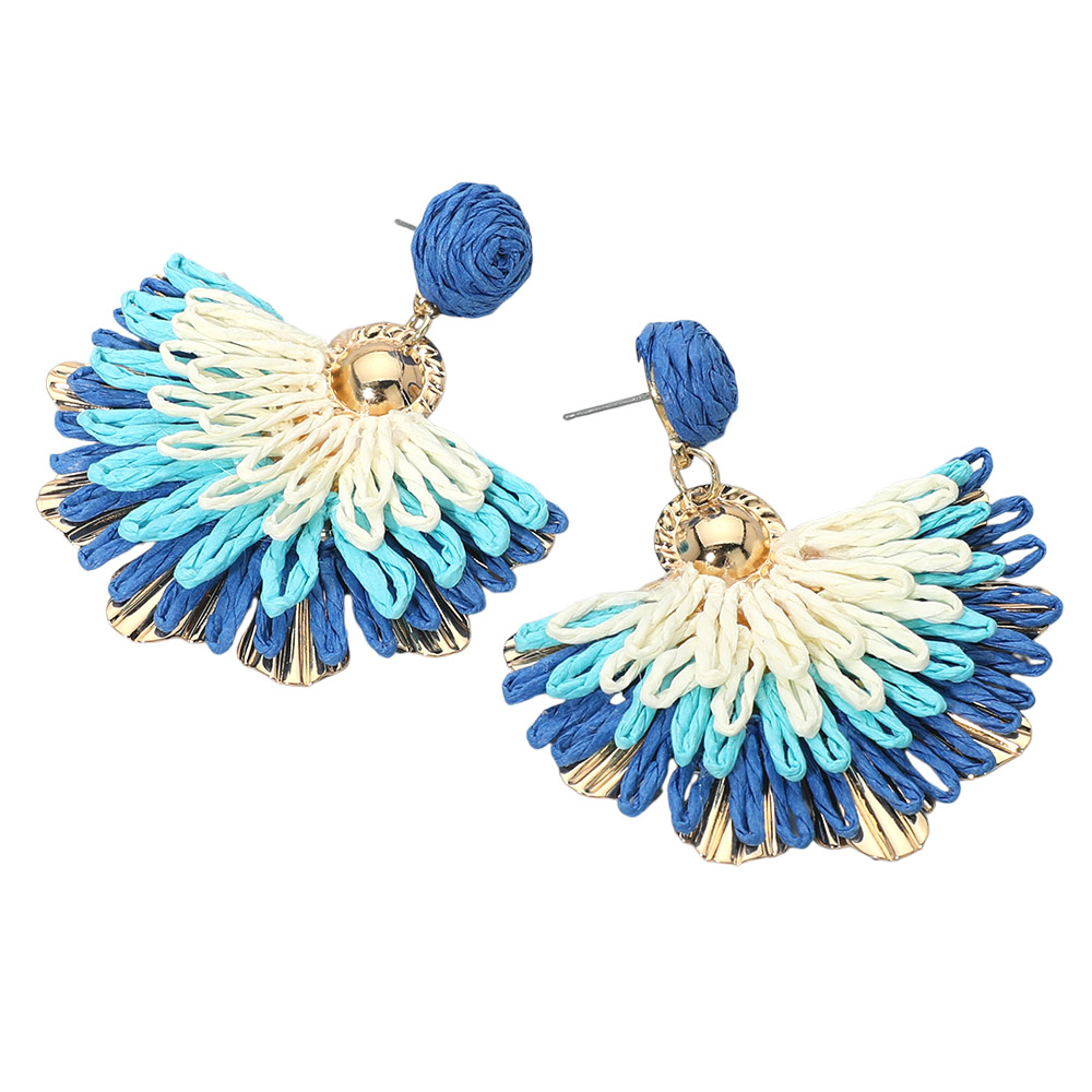 Raffia Fan Drop Dangle Earrings