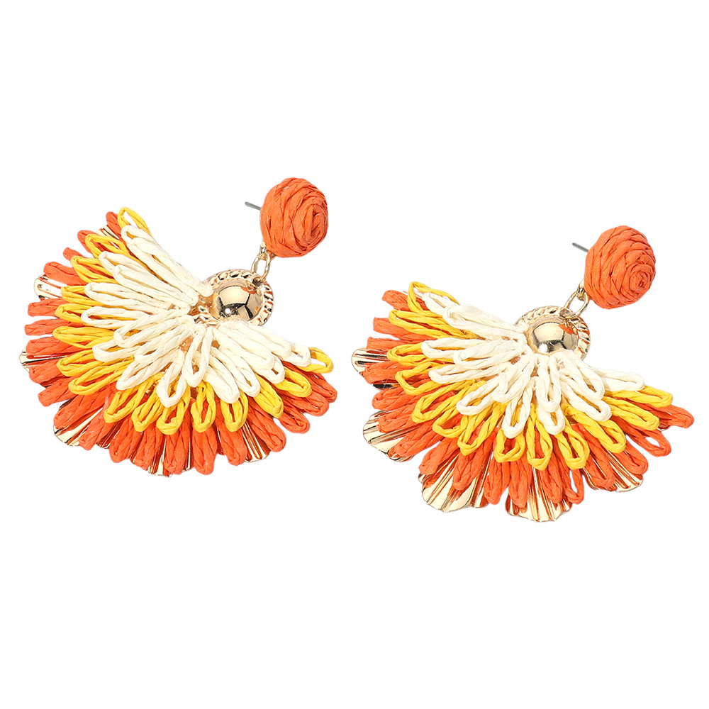 Raffia Fan Drop Dangle Earrings