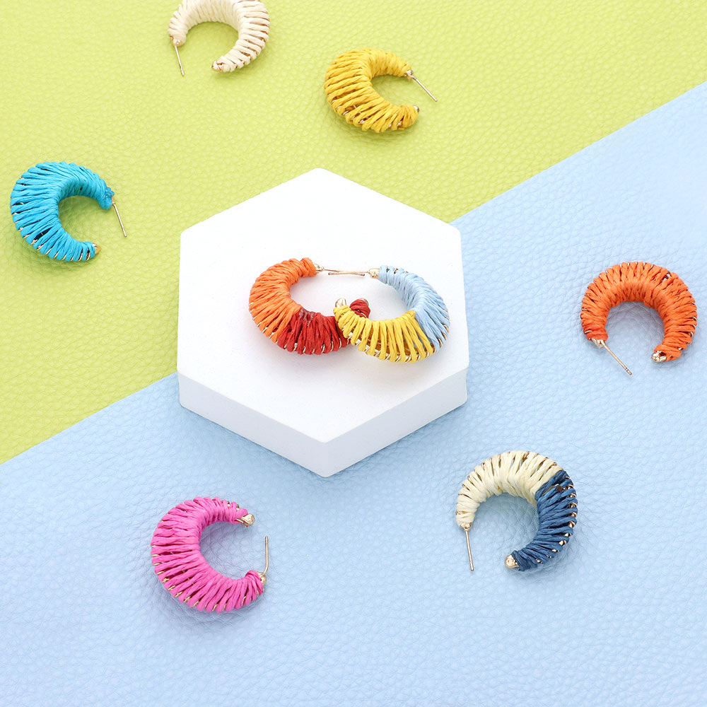 Raffia Wrapped Hoop Earrings