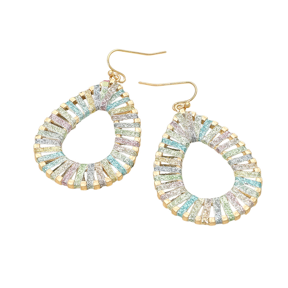 Details • Size : 1.3" X 2.25" • Fish Hook Back • Woven teardrop earrings with an open center design and intricate faux leather wrap detail. Lightweight and eye-catching, these dangle earrings add a bold, artisanal flair to any outfit. Ideal for casual or vacation-ready looks. • Lead and Nickel Compliant