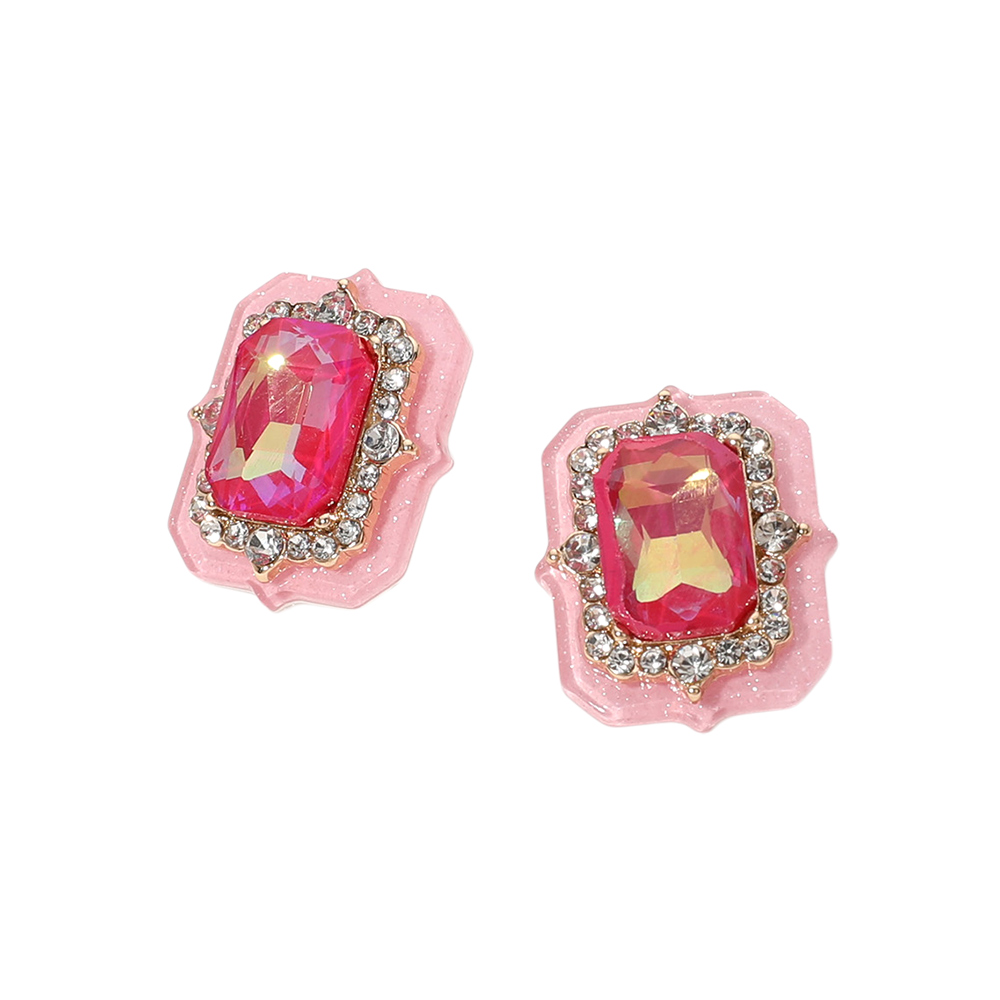 Rhinestone Cluster Embellished Chunky Hoop Pin Catch Earrings
