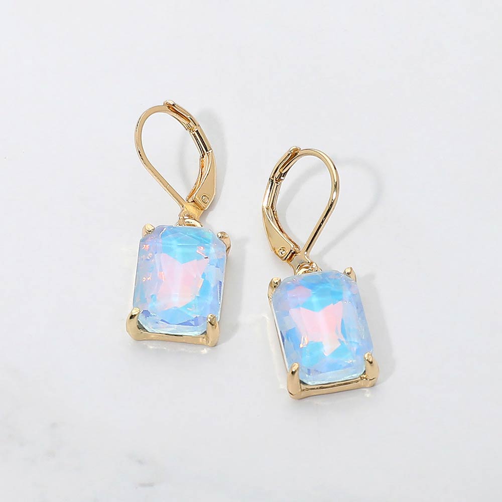 Rectangular Glass Stone Drop Dangle Earrings Rectangular Glass Stone Drop Dangle Earrings