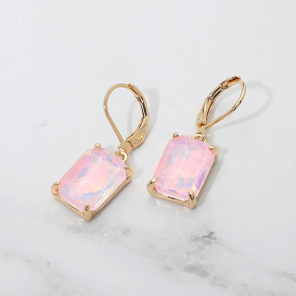 Rectangular Glass Stone Drop Dangle Earrings Rectangular Glass Stone Drop Dangle Earrings