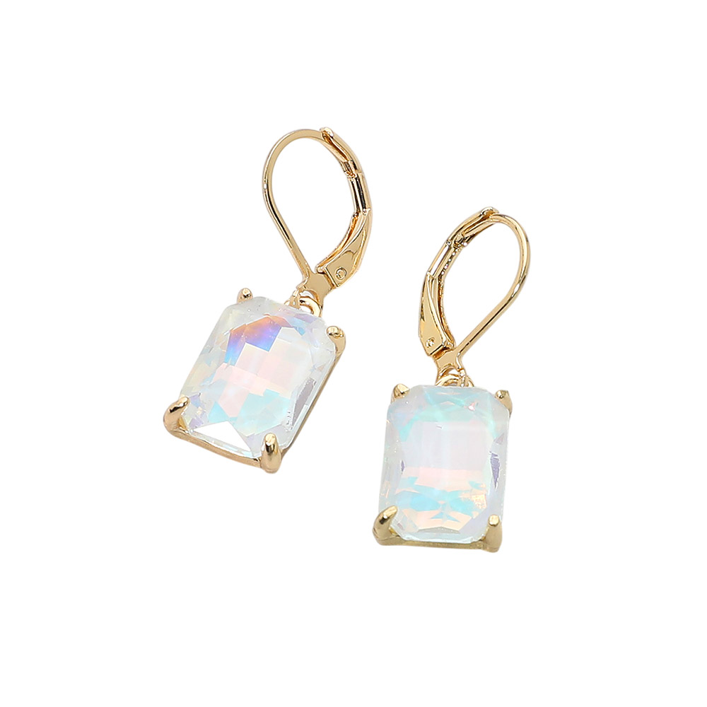 Rectangular Glass Stone Drop Dangle Earrings