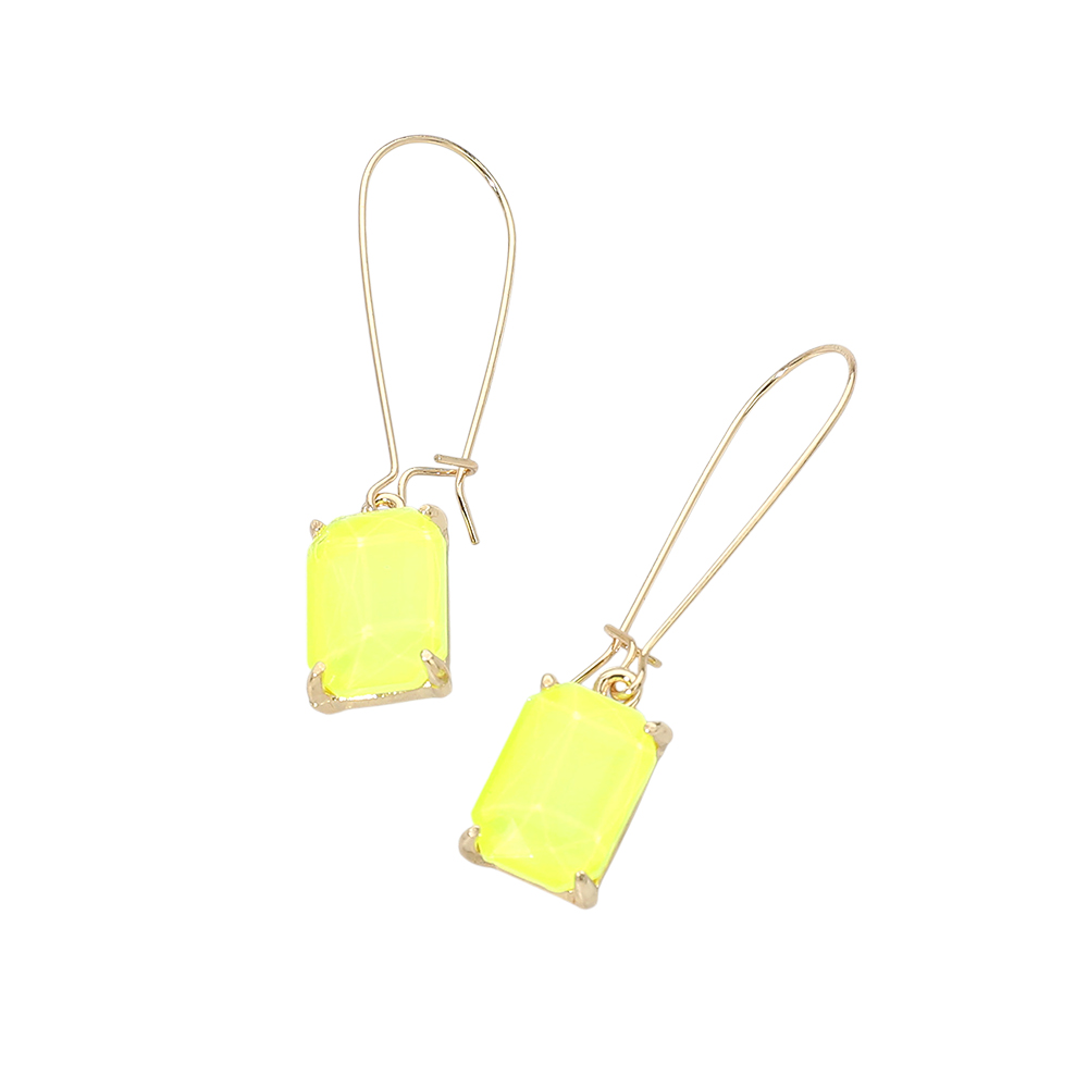 • Elegant drop earrings featuring a faceted rectangular stone suspended from a sleek hook silhouette. Designed to add refined sparkle and movement, this versatile style transitions effortlessly from daytime looks to evening wear, making it a strong addition to boutique jewelry selections, gift assortments, and trend-forward accessory collections.