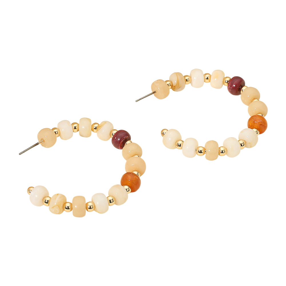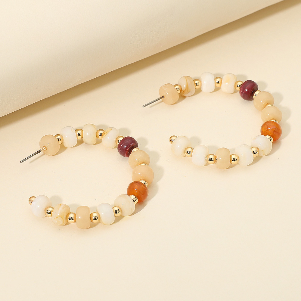 • Stylish beaded hoop earrings featuring glossy resin beads and gold-tone accents. Lightweight and comfortable for daily wear, these trendy hoops add a warm, modern touch to any outfit. Perfect for casual looks or gifting.
