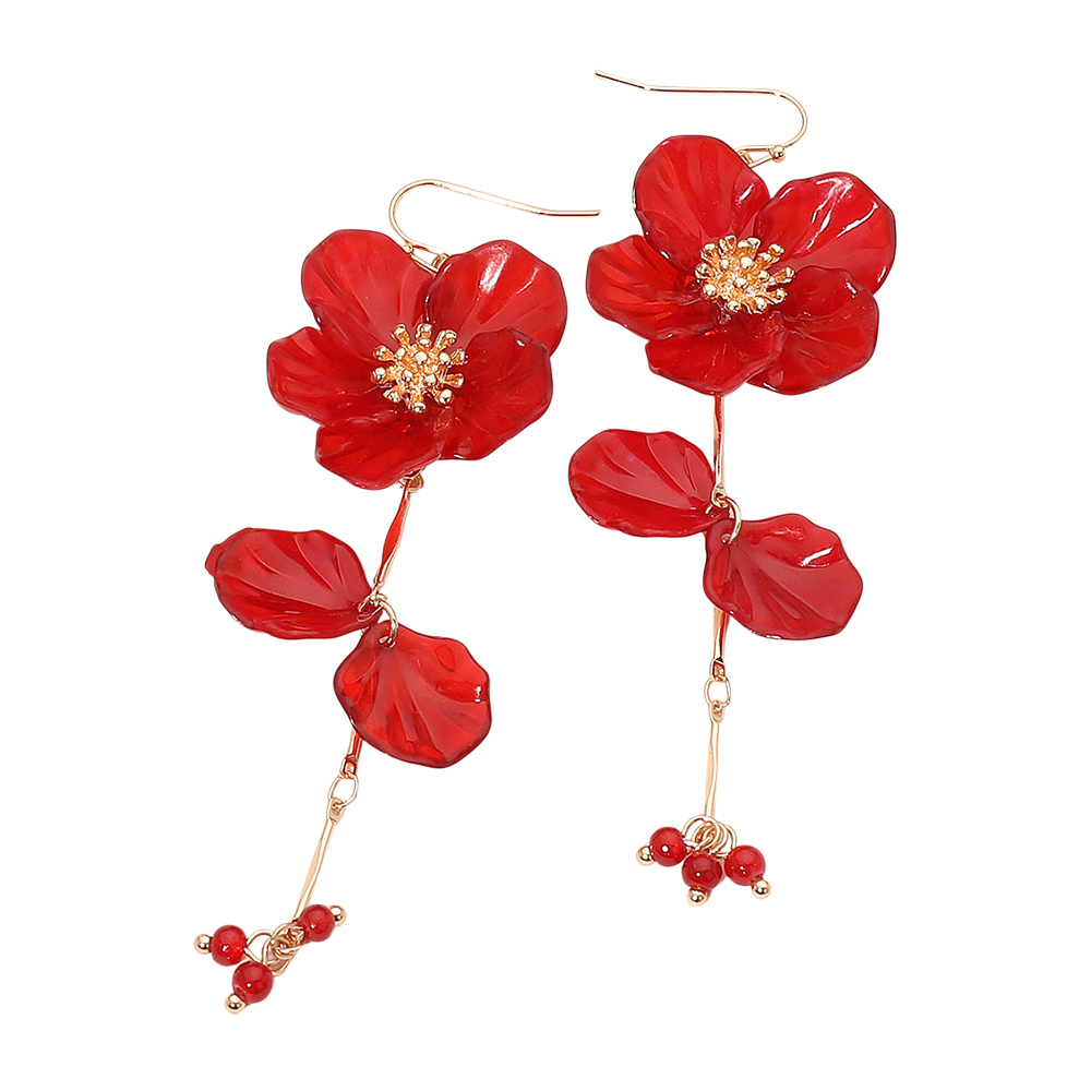 Details • Size : 1.25" X 3.75" • Fish Hook Back • Elegant long drop earrings featuring layered floral petals and delicate clustered accents for a soft, romantic look. Perfect for weddings, parties, garden events or adding graceful botanical charm to everyday style with their airy, feminine movement. • Lead and Nickel Compliant