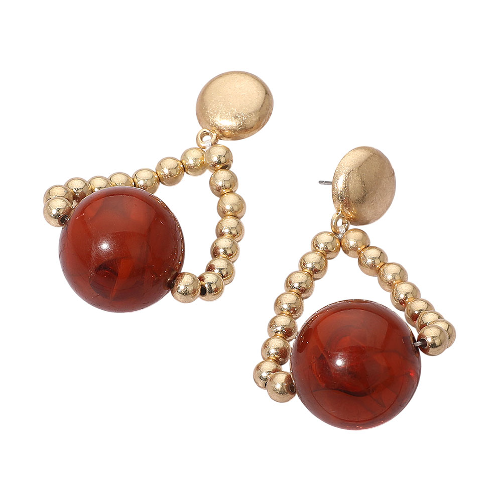 Resin Sphere Center Beaed Loop Drop Earrings