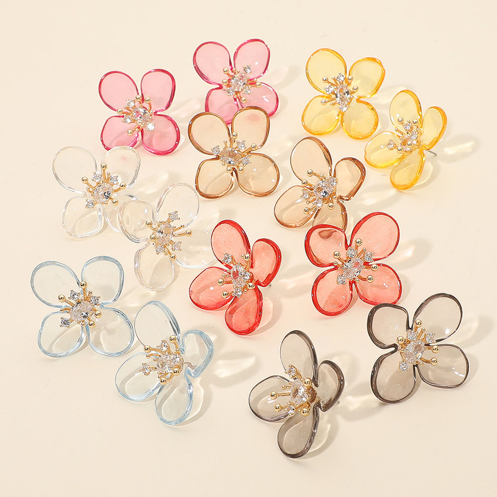 Rhinestone Accent Transparent Resin Petal Flower Earrings Rhinestone Accent Transparent Resin Petal Flower Earrings Rhinestone Accent Transparent Resin Petal Flower Earrings